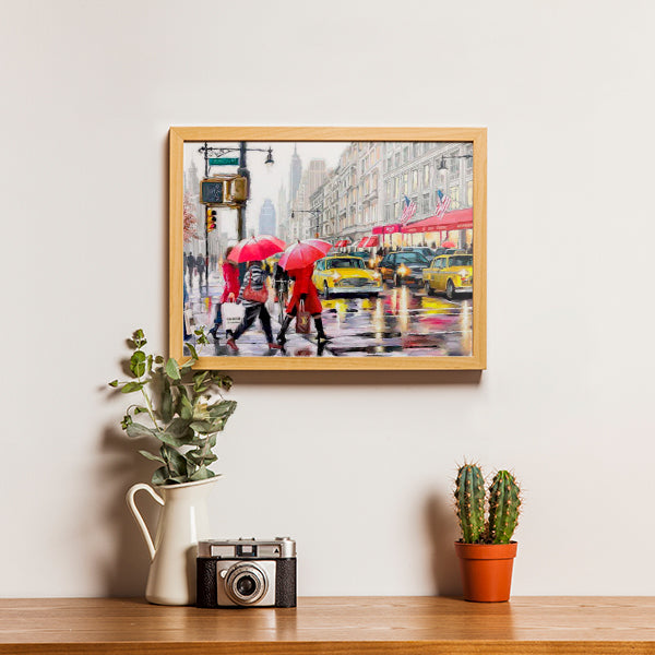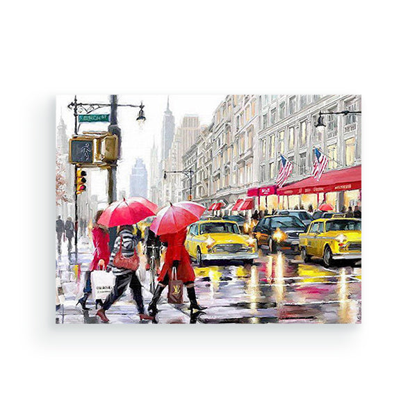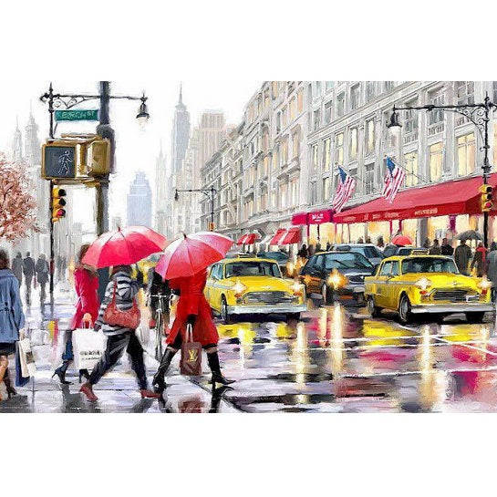 Boston is de hoofdstad en grootste stad van de Amerikaanse staat Massachusetts. Het wordt ook beschouwd als de officieuze hoofdstad van New England. In het jaar 2010 had Boston 617.594 inwoners. Op dit schilderen op nummers doek, zie je een echte drukke Amerikaanse straat met de bekende gele taxi's, hoge gebouwen en Amerikaanse vlaggen. Het is regenachtig weer en de paraplu's zijn ook echt noodzakelijk. Ben je gek op paint by numbers en Amerikaanse steden? Dan is dit een mooie uitdaging voor jou!
