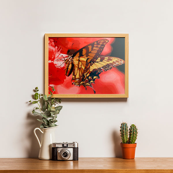 Bij aankoop van een hobbypakket van De Vlinderstichting via Schilderenopnummers.com of Webshop-outlet.nl doneer je automatisch €5,-. Dit bedrag wordt in zijn geheel gedoneerd aan De Vlinderstichting. De Koninginnepage kun je ook tegen komen in Nederland en Belgie. Deze mooie vlinder met een opvallende gele kleur is één van de grootste vlinders die je hier in de natuur kan tegenkomen. De koninginnenpage heeft een voor een page relatief grote spanwijdte tot 75 millimeter. Een mooie vlinder om te schilderen. Op het schilderen op nummers doek zie je een koninginnenpage zitten op een bloem. Een mooi paint by numbers project en goed voor vele uren ontspanning en schilderplezier! Durf jij de uitdaging aan?